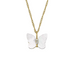 This delicate necklace showcases a butterfly pendant crafted with white mother-of-pearl, symbolizing elegance and grace. Its refined design makes it a timeless piece for adding a soft, radiant accent to any outfit.