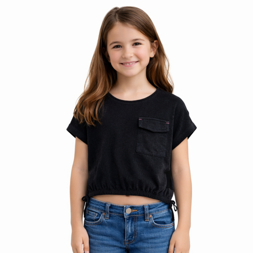 Epic Threads - Big Girls Solid Side Tie Short Sleeve Crop Top Deep Black