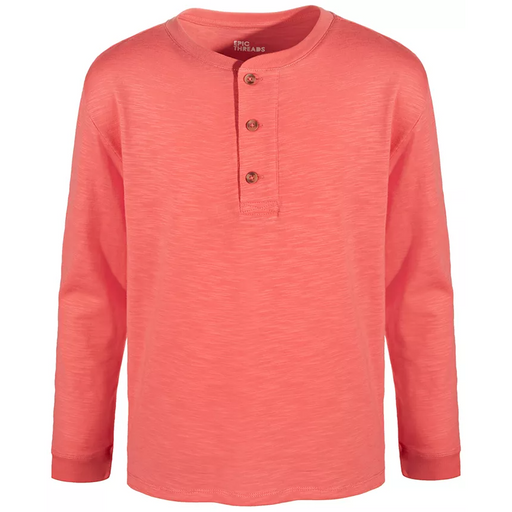 Epic Threads - Little Boys Solid Henley Long Sleeves Shirt Coral Salmon (6)