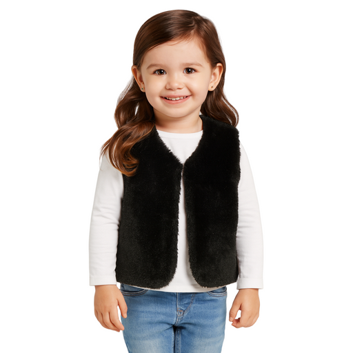 in stockThis toddler vest is designed with a plush faux-fur texture in a deep black shade, offering both softness and comfort. Crafted from 100% polyester,...
