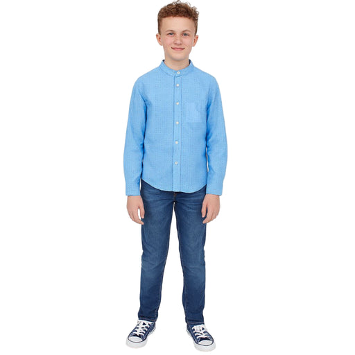 The Children's Place - Big Boys Long Sleeve Grandad Collar Button Down Shirt