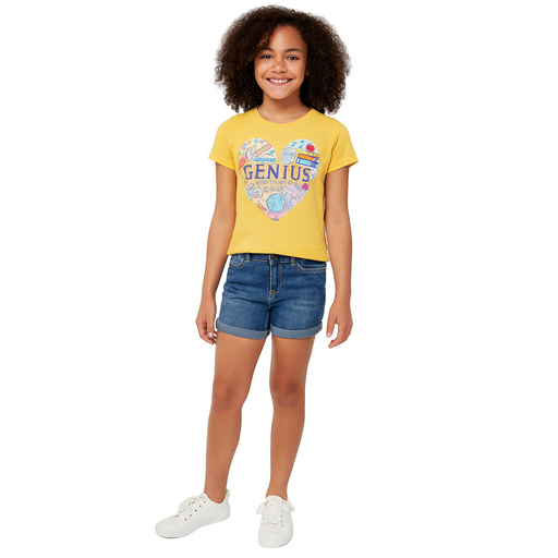 Only 1 left!The Children's Place Big Girls Short Sleeve Genius Graphic Tee in yellow offers a comfortable and playful option for everyday wear. Made from soft ...