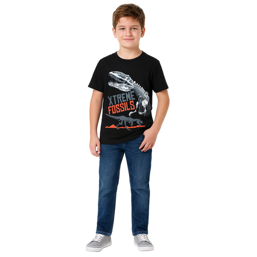 Only 1 left!The Children’s Place Big Boys Short Sleeve T-Shirt in black features a bold "Extreme Fossils Dinosaurs" graphic on the front. Made from 100% cotton...