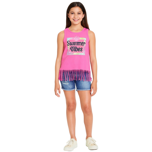 Only 1 left!The Children’s Place Big Girls Sleeveless Fringe Top in fuchsia pink is a lightweight and comfortable option for warm weather. Designed with a slee...