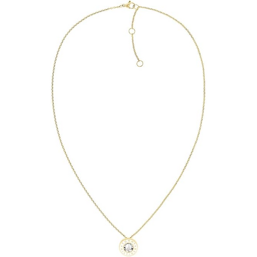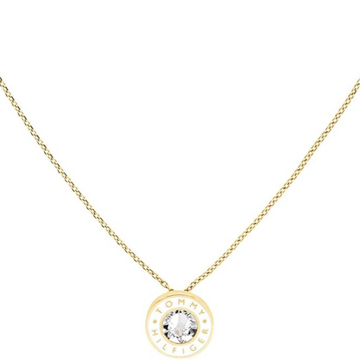 in stockTommy Hilfiger Women's Ionic Plated Thin Gold Steel and Crystal Necklace – 2780801This necklace features a delicate gold-plated steel chain accente...