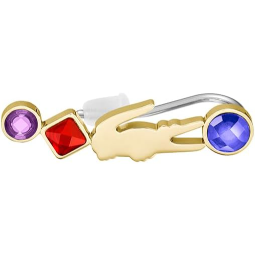 in stockLacoste Women's Ionic Plated Thin Gold Steel and Multicolor Stone Earrings - 2040336 These climber-style earrings feature thin gold ionic plated st...