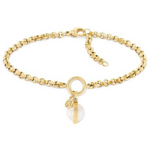 in stockTommy Hilfiger Women's Ionic Plated Thin Gold & Steel Bracelet with White Pearls – 2780765This bracelet features a delicate gold and steel band...