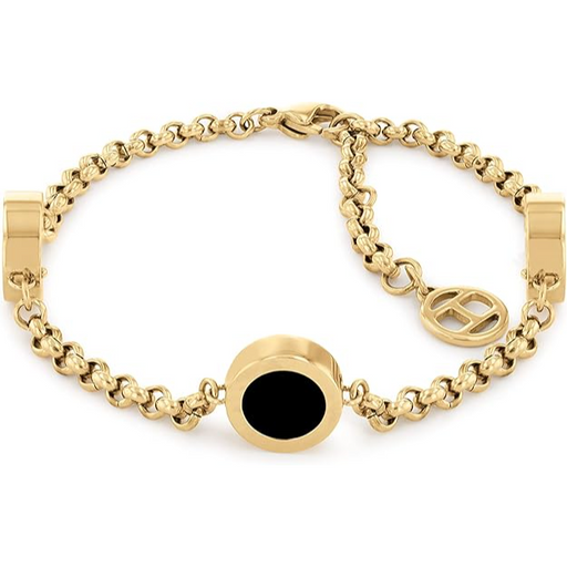 in stockTommy Hilfiger Women's Ionic Gold Plated Steel & Black Onyx Stone Bracelet – 2780659This bracelet features a gold-plated steel band accented wi...