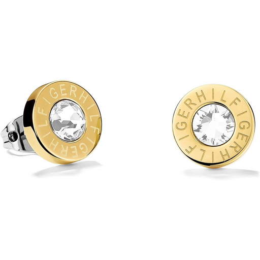 in stockTommy Hilfiger Women's Ionic Gold Stainless Steel with Crystal Earrings – 2780566These earrings feature an elegant gold-tone finish accented with s...