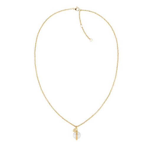 Tommy Hilfiger Women's Ionic Plated Thin Gold 2 Steel and White Pearls Necklace - 2780762