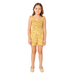 The Speechless Girls' Paisley Print Romper in Golden Yellow features a square neckline and sleeveless design. Crafted from a soft, stretchable fabric blend, it offers comfort and ease for everyday wear.