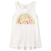 The Children’s Place Big Girls Sleeveless Top in white features a glittered rainbow graphic on the front. Made from a breathable cotton-polyester blend, this top is lightweight and designed for comfortable wear in warmer weather.