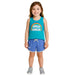 The Under Armour Little Girls 2-piece set in Rain Blue Surf includes a sleeveless top and matching shorts. Made from soft cotton, the set is designed for comfort and ease of movement during everyday activities.