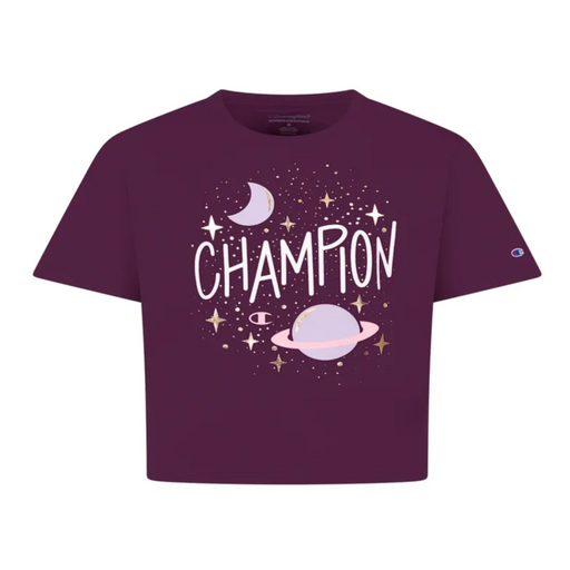 Only 1 left!The Champion Big Girls Planet Graphic T-shirt in Plum Port is a comfortable and stylish option for active girls. The t-shirt features a fun planet ...