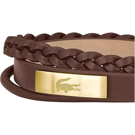 in stockLacoste Men's Ionic Plated Thin Gold Steel Brown Leather Bracelet - 2040317 This bracelet features brown leather paired with thin gold ionic plated...