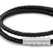 This bracelet features a sleek combination of stainless steel and black leather, offering a modern and masculine look. Its versatile design makes it an ideal accessory for casual and everyday outfits.