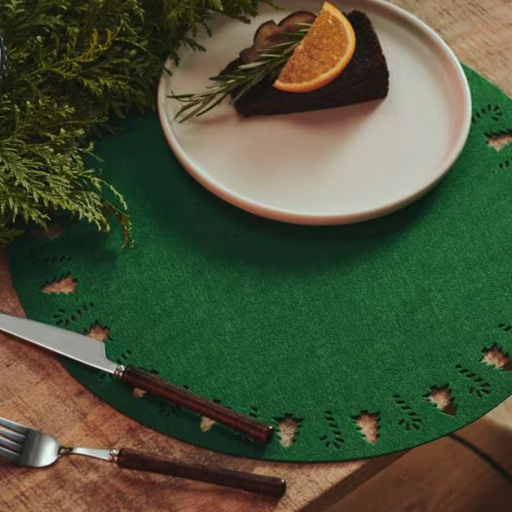 2-Pcs Round Place Mat Christmas Tree Design