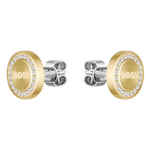 Boss Women's Ionic Plated Thin Gold Steel & Crystal Earrings - 1580557