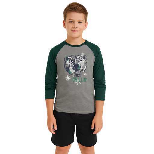 Only 1 left!This Max & Olivia long sleeve shirt for big boys features a fun "Just Chillin" bear graphic, offering a cozy and relaxed style suitable for eve...