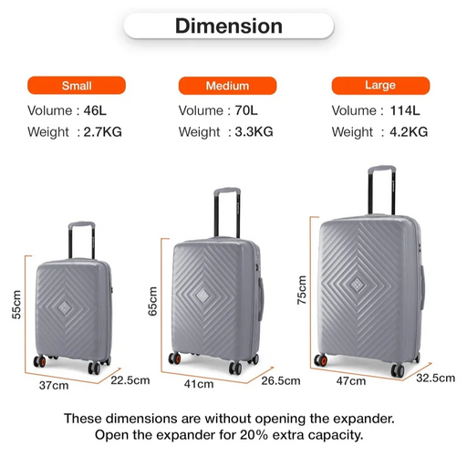 in stockNasher Miles Antwerp TSA Lock & Expander Hard-Sided Polypropylene Luggage Set of 3 – Grey Small, Medium & Large Trolley Bags (55, 65 & ...