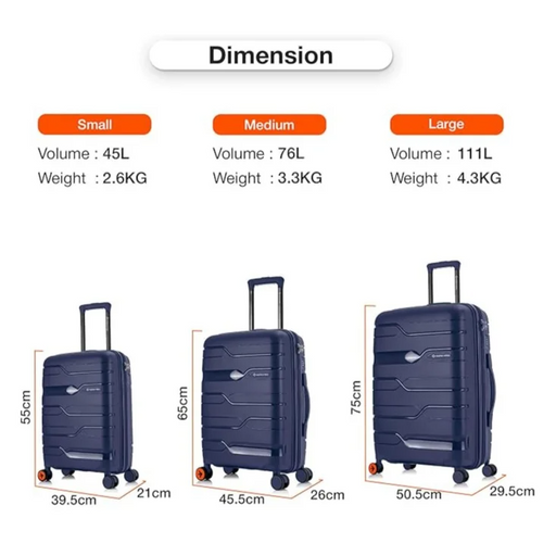 Nasher Miles Paris Hard-Sided Polypropylene Luggage Set of 3 Navy Blue Trolley Bags (55, 65 & 75 Cm) Small, Medium & Large