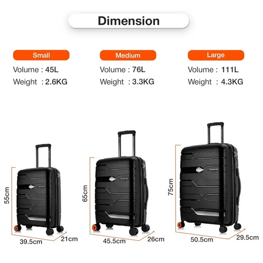 in stockNasher Miles Paris Hard-Sided Polypropylene Luggage Set of 3 – Black (55, 65 & 75 cm) Travel with confidence and sophistication using the Nashe...