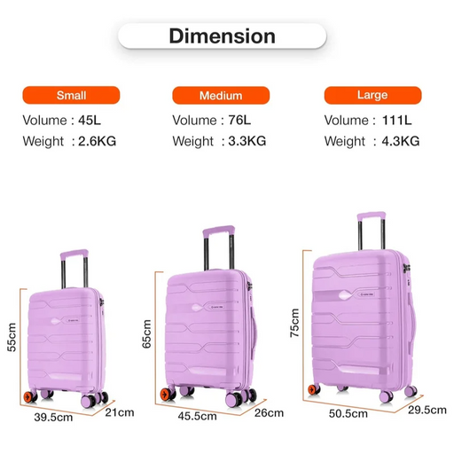 Nasher Miles Antwerp TSA Lock & Expander Hard-Sided Polypropylene Set of 3 Pastel Purple Small, Medium & Large Trolley Bags (55, 65 & 75 Cm)
