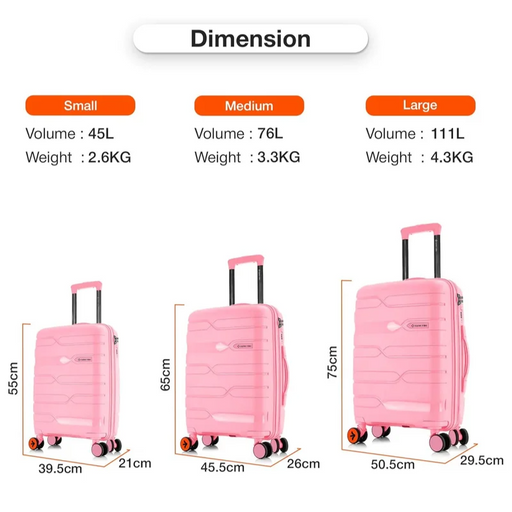 Nasher Miles Paris Hard-Sided Polypropylene Luggage Set of 3 8 Wheel Trolley Bags (55, 65 & 75 Cm) Small, Medium & Large, Pink
