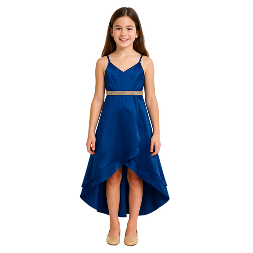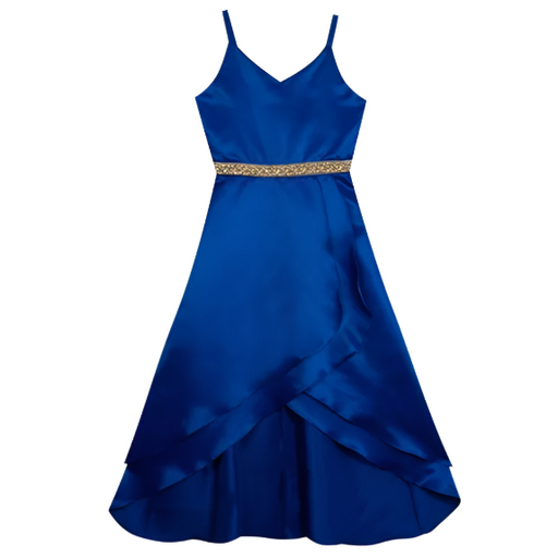 Only 1 left!The Rare Editions Big Girls Satin Hi-Low 2-Tier Dress in royal blue features a flowing silhouette and elegant finish, designed for formal events or...
