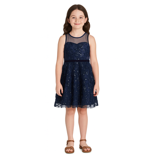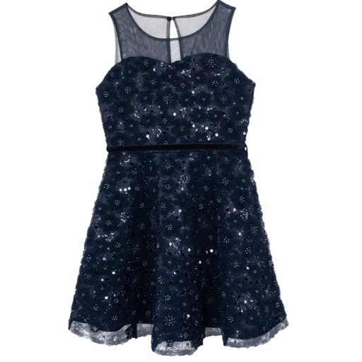 Rare Editions - Big Girls Sequin Soutache Social Dress Navy (8)