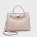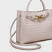 Elevate your everyday style with this stunning handwoven faux leather tote bag, a masterpiece of craftsmanship and modern elegance. Designed for the woman who values sophistication and function, this bag blends timeless artistry with contemporary charm. The signature gold knot accent adds a refined touch ,while the braided crossbody strap and structured top handles offer versatile styling options.