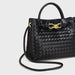 Elevate your everyday style with this stunning handwoven faux leather tote bag, a masterpiece of craftsmanship and modern elegance. Designed for the woman who values sophistication and function, this bag blends timeless artistry with contemporary charm. The signature gold knot accent adds a refined touch ,while the braided crossbody strap and structured top handles offer versatile styling options.