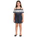 The Speechless Big Girls Off the Shoulder Romper in Navy/White combines a stylish neckline with the comfort of a one-piece design. It offers a relaxed fit suitable for casual days.