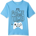 The Children’s Place Big Boys Short Sleeve T-Shirt in blue features a vibrant "It's Game Time" graphic with a joystick design. Made from 100% cotton, it offers soft, breathable comfort for everyday activities.